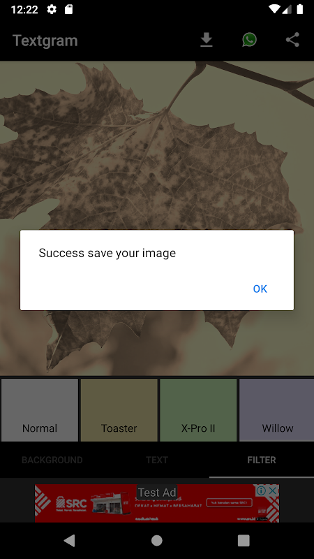 In the menu FILTER Textgram - Text on Photos, you can filter your text that you created with beautiful filter. Very easy to use, only click on the filter that you want and you can see the applied filter instantly.