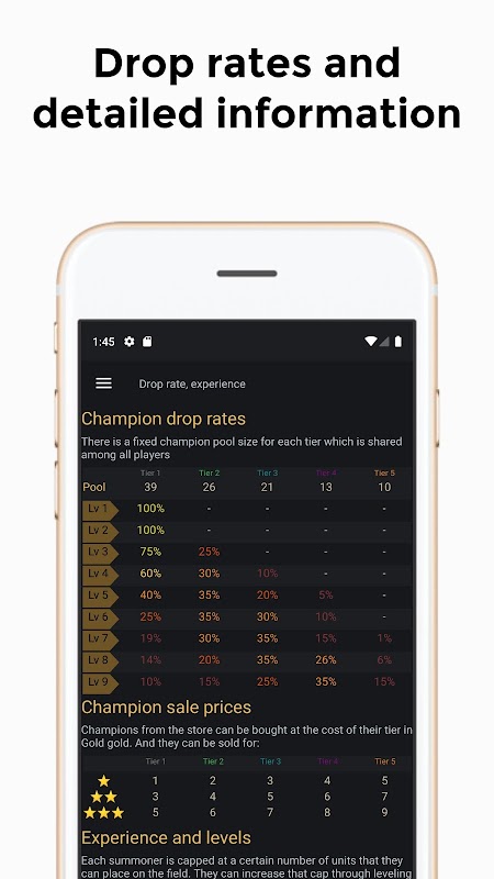 The app serves as a TFT Helper. Stay regularly updated with the newest patches without the need to update the app - the app synchronizes the data by itself!