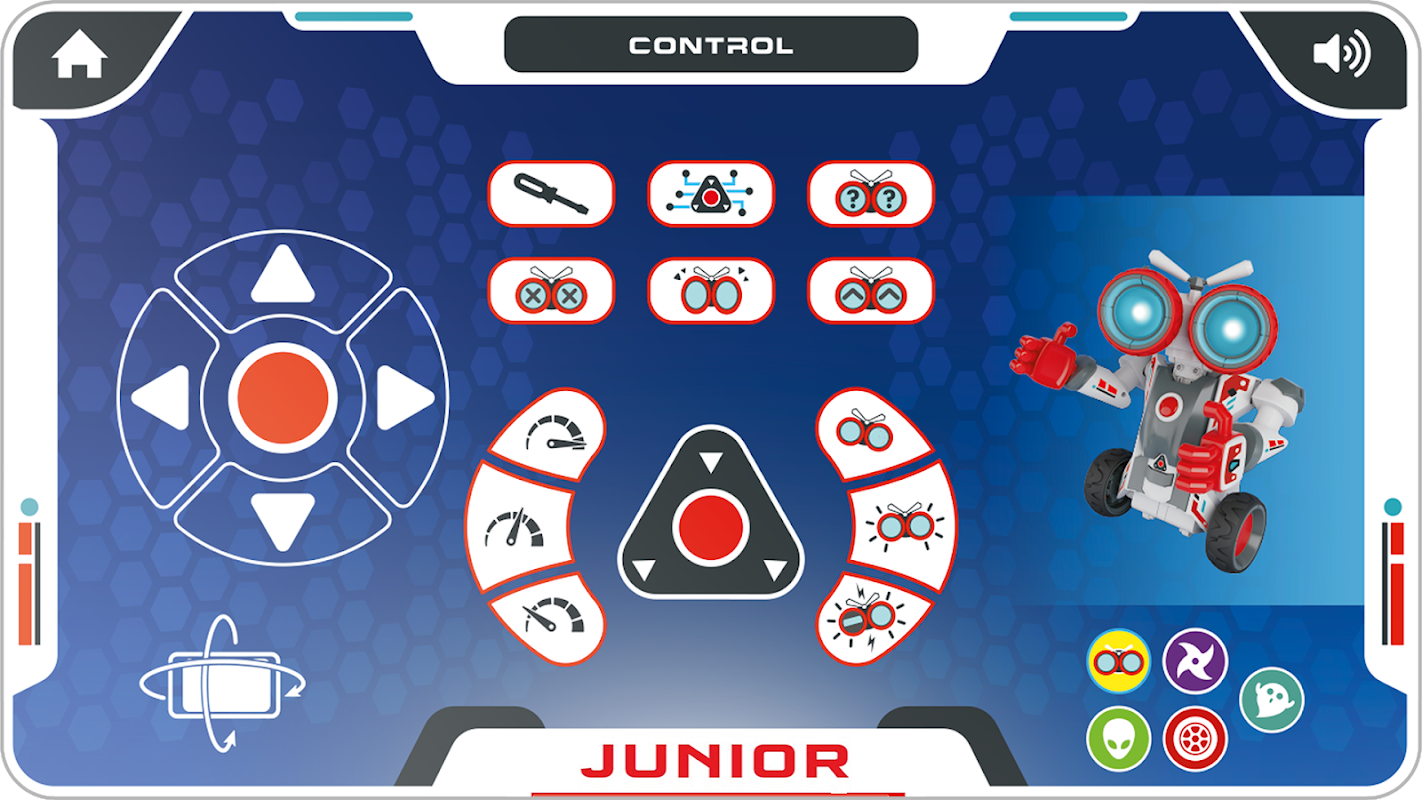 您可以控制青少年的动作和声音。通过遥控器或将您的设备用作陀螺仪,享受驾驶 Junior 的乐趣。使用应用程序中包含的简单可视化界面为初级编程。