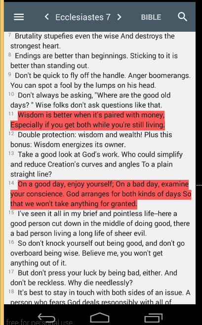 Bookmark verses and passages and read them again later. Study Bible and highlight passages and verses with you favorite custom colors.