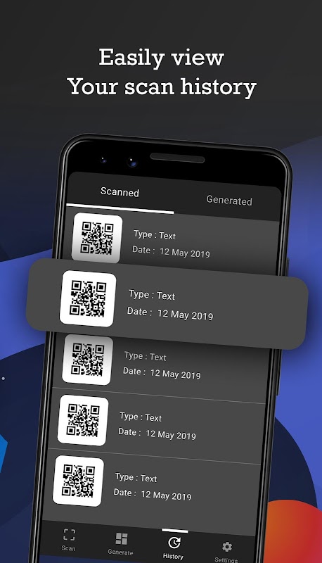 * This QR Reader app saves your scan history and helps you get a quick access to your old codes