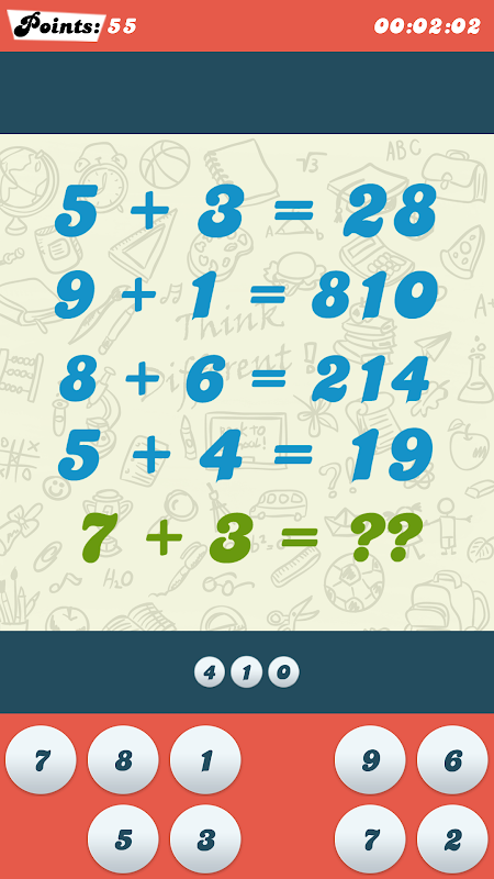 Think Different is Puzzle games. It is very challenging game since it's provide different question and trick. the game provide ten levels and if you pass them you really have a great mind and logic