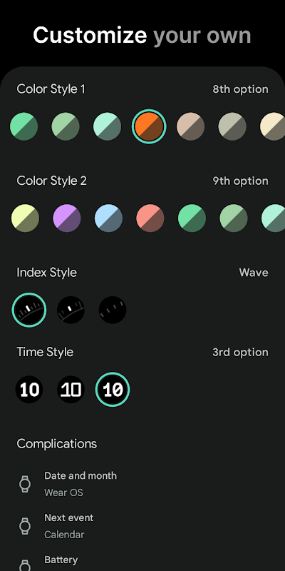 可定制的彩色 ComplicationSlot 表盘