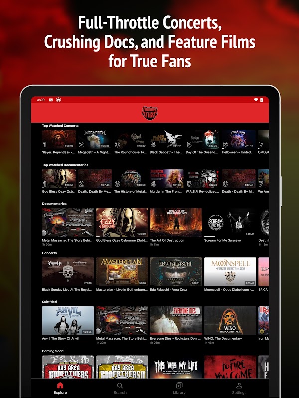 准备好在完全专注于重金属的需求平台上观看世界上第一个流媒体视频吧!通过访问数百个音乐视频、现场表演、纪录片和故事片,深入了解来自世界各地的最佳金属音乐。