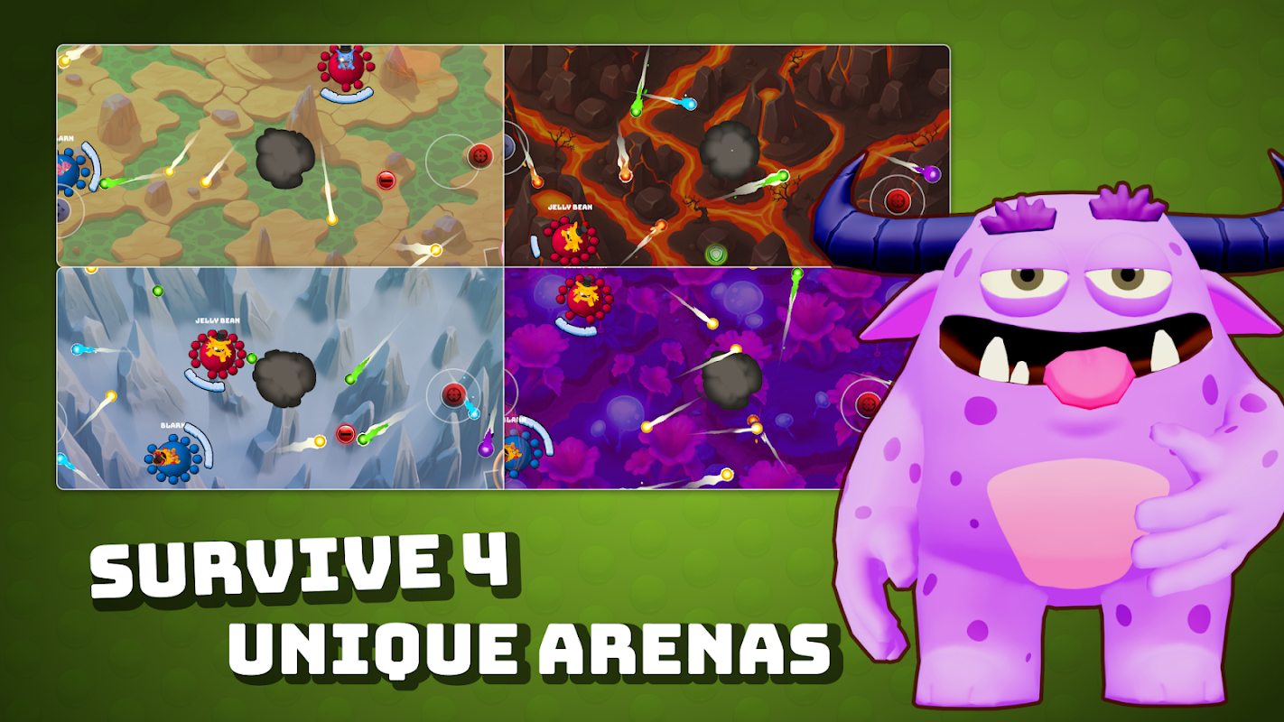竞技场会不断轮换出现各种危险,例如毒云、火焰边缘、传送门和凛冽寒风——让每场比赛都充满变数。