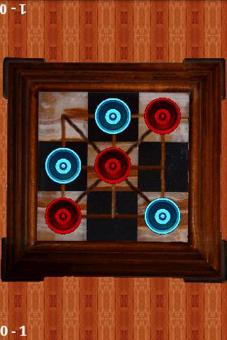 在3x3的棋盘上,你需要放置和移动三个棋子。最先将三个棋子水平、垂直或对角排列整齐的玩家得一分。