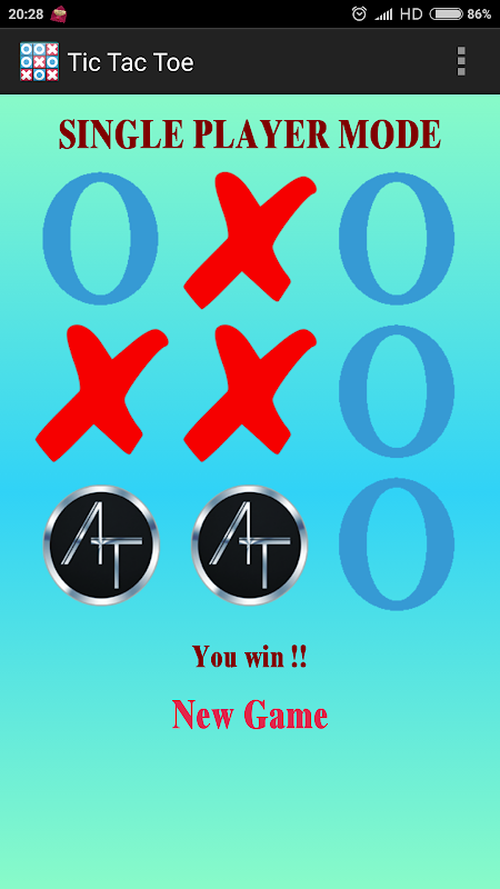Single Player / Multi Player Tic Tac Toe Android Game !! No need of any person !! You can play tic tac toe with android device as your opponent.