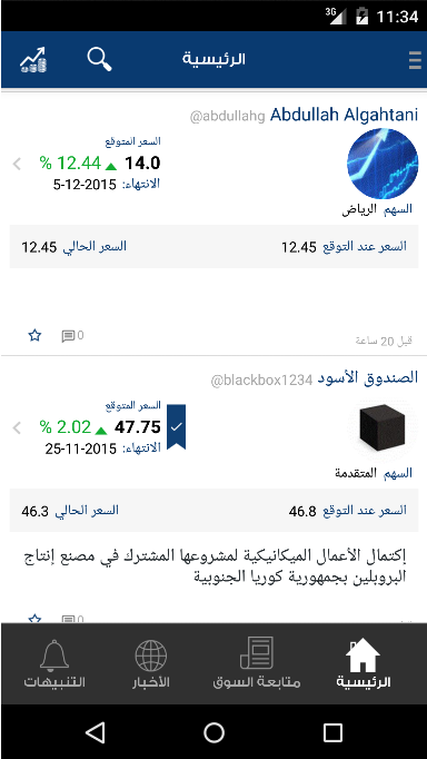 هذا التطبيق يشتمل على كثير من المميزات والخدمات، فمن خلاله تستطيع أن تبعث رسائل نصية إلى مستخدمين آخرين، وتستطيع انشاء قائمة متابعة للأسهم التي ترغب في متابعتها، وبالتالي تستطيع مشاهدة الأسعار، والتعليقات على الأسهم، والأخبار، وكذلك الرسوم البيانية. كما تستطيع استعراض المتوسط المرجح للتوقعات على سهم محدد.هذا الإصدار سوف يكون على سوق الأسهم السعودي، وسوف يتم إضافة الأسواق الأخرى قريباً إن شاء الله تعالى