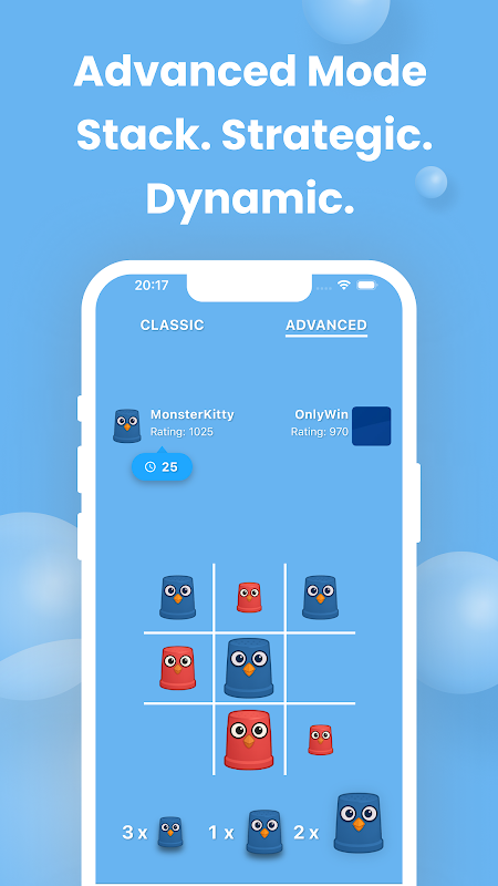 TicStack 并非仅仅是井字棋的翻版。它是一款策略性的回合制多人游戏,为您自以为熟悉的游戏增添了全新的深度和挑战性——非常适合经典井字棋游戏的粉丝。