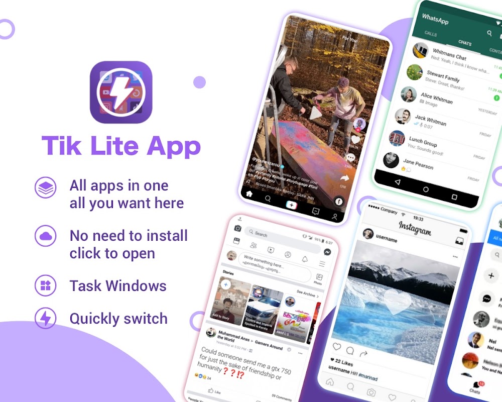 适用于whatsapp,tiktok,facebook等的即时应用程序和简易应用程序,无需安装。