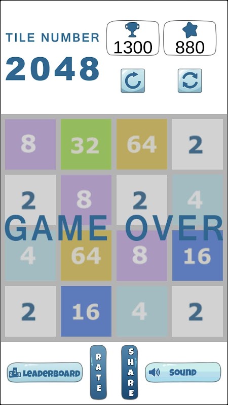 滑动移动瓷砖,当两个区域具有相同数目的触摸,它们合并成一个。当创建一个2048瓦,玩家赢得! 8 .. 16 ... 1024 ... 2048