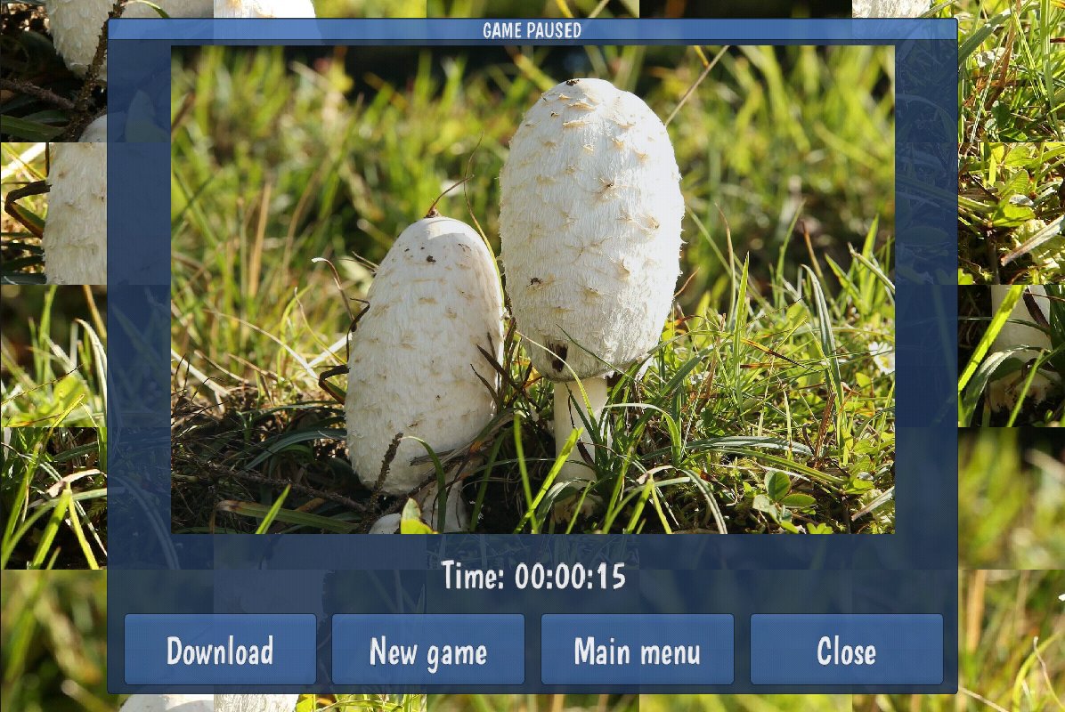 Solve this mushrooms tile puzzle by dragging and dropping the image tiles. You can choose between different puzzle sizes and there are lots of mushrooms images with different difficulties available.