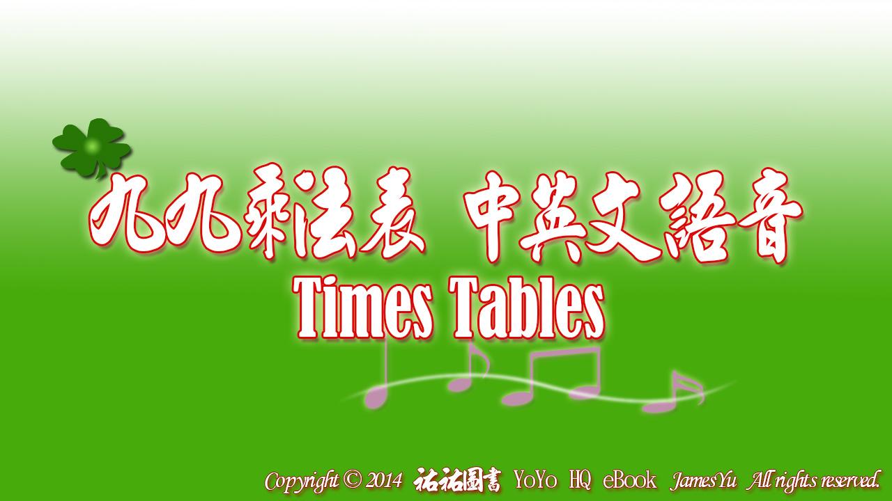 中英文双语九九表,大型字卡,全屏幕轻松阅读,内建243题随机测验题库,强化学习成果,真人发音,自动循环播放,直觉式左右手翻页,可放大缩小,任意翻页.