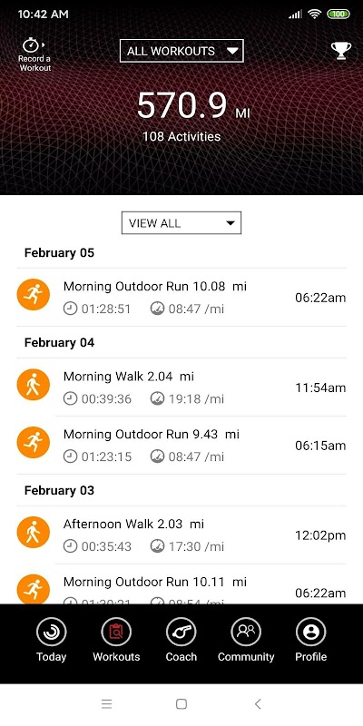 •锻炼历史和个人记录