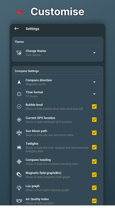 • 有吸引力的指南针皮肤。
