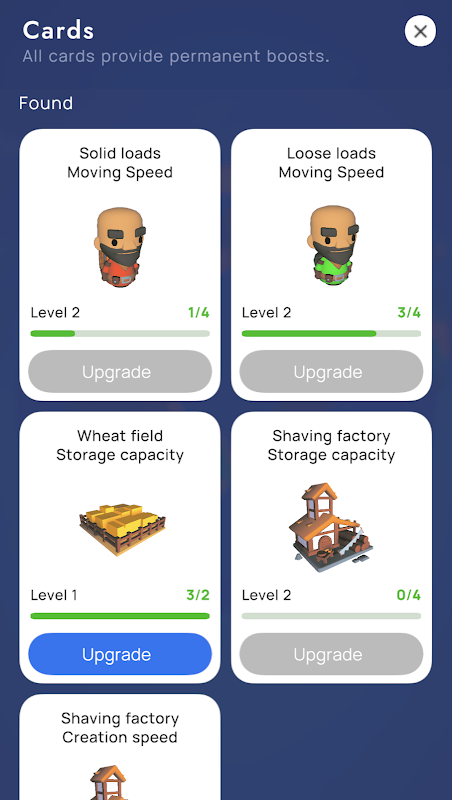 🏆?他们没有锤子、镐或三叉戟,但他们有一个强大的背包和一支光荣的工人团队,他们可以一起将山脉砸成岩石,挖掘矿物和开采黄金。在每个级别升级它以提高您的生产力,并收集更多资源以继续构建。