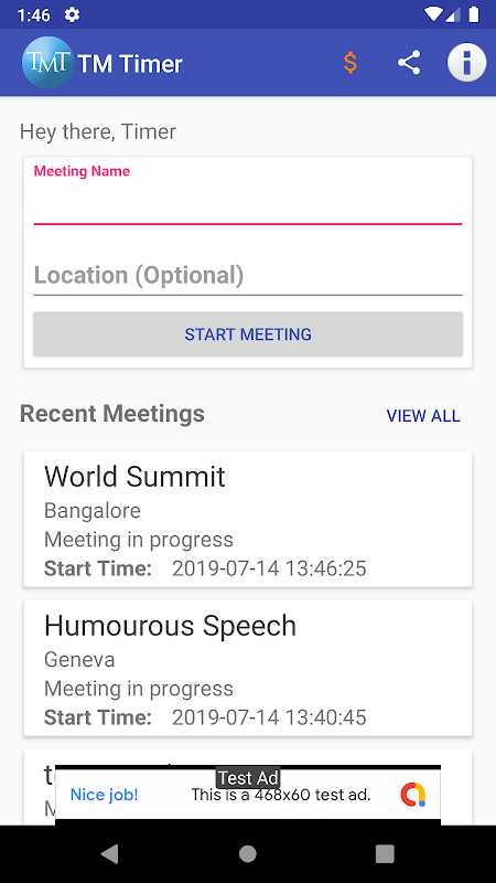 Toastmasters(TM)计时器应用程序。创建会议,添加演讲者详细信息和开始计时器