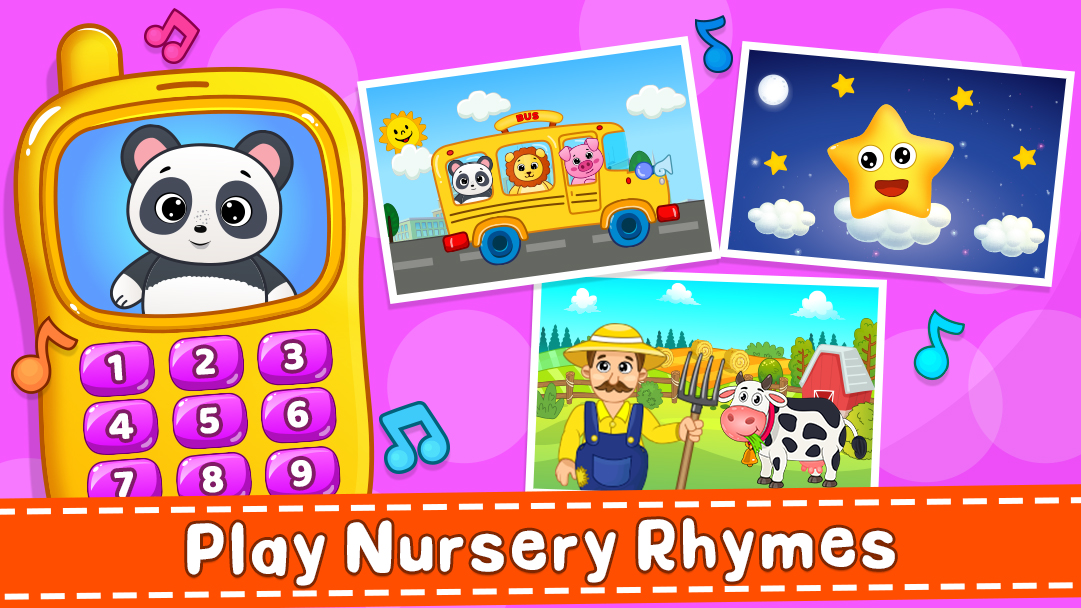 This free baby phone game helps your kids develop matching, tactile, and motor skills while playing different Toddler nursery rhymes, baby songs.