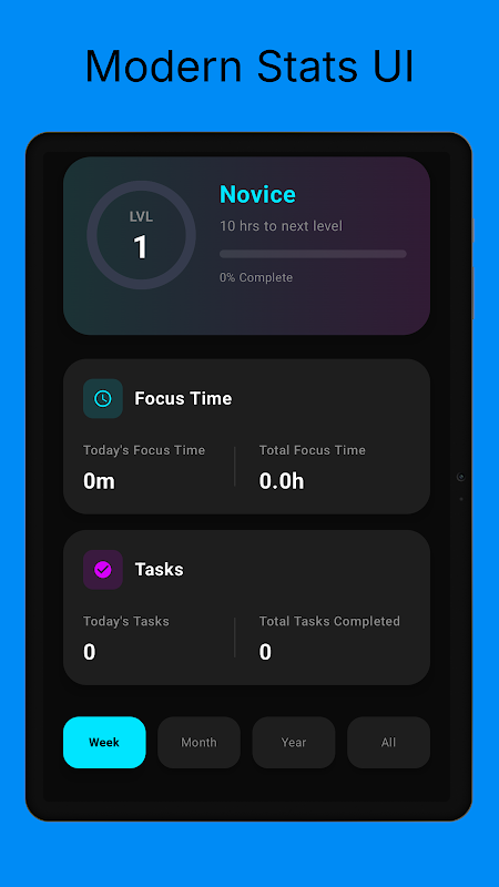 Level Up System: Earn XP for every minute you focus. Go from "Novice" to "Legend" as you build your productivity streak!