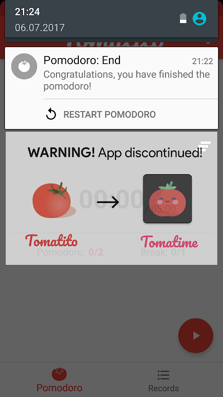 - This project is mainly due to educational reasons. I wanted to try different Android features that I had not yet used. This was the perfect excuse to implement a tiny and simple application with my approach of what a pomodoro timer should be.