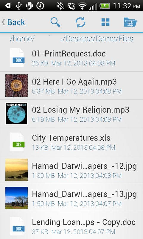 您可以立即打开从你的Android设备,只需点击一下您的计算机上存储的文件,文件夹,图片或视频。没有上传到公众的在线服务,没有存储限制,没有安全和隐私的担忧。 Tonido使得很容易的工作直接与您的计算机上的文件,无论你在哪里。