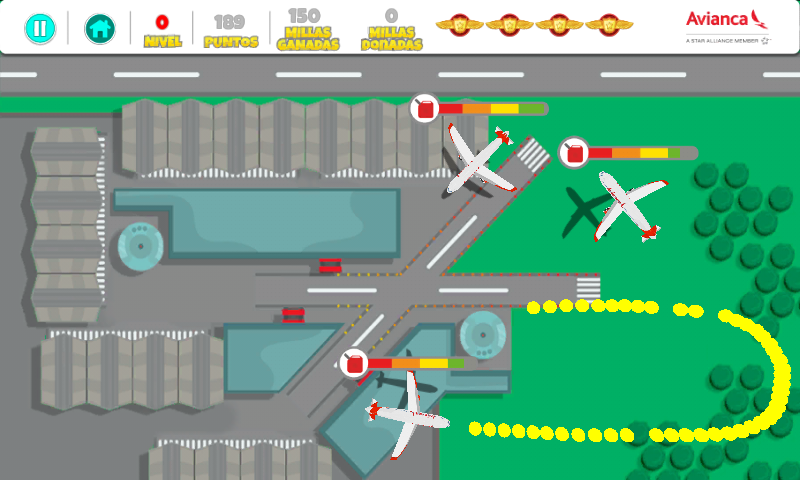 Para ganar millas virtuales lleva cada avión a la pista asignada para el aterrizaje antes de que se termine la gasolina. Por seguridad, no permitas que vuelen cerca de los otros aviones. Donando tus millas virtuales en el Banco de Millas de Kidon.co podrás ayudar a que muchos niños viajen a recibir tratamiento médico.