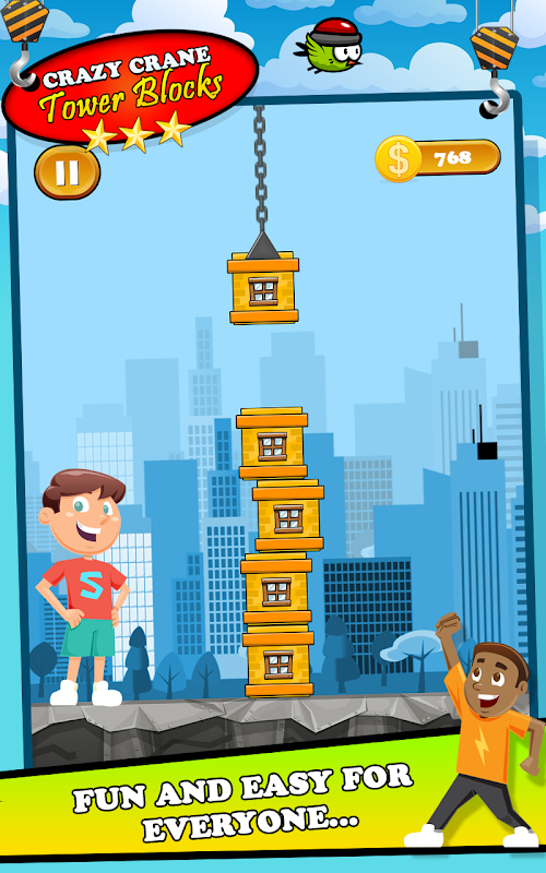 Reach the skies in a wacky skyscraper construction Tower Blocks game that tests your reflexes and puzzle skills! Build brand new homes for Tower who move in before they even have a roof over their heads! It's a test of skill - the faster you drop new floors, the happier they'll be. But it's windy up there, and mistakes can cost you a bunch of floors! Casual, one-button game play makes building skyscrapers fun and easy for everyone, Stack up blocks to make the highest skyscrapers possible.
