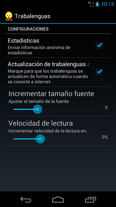 通过你可以阅读或听捻线文本为Android语音服务的应用程序,您还可以拨打捻成我的最爱,你看,或者读取一个随机的。在首选项中,你可以改变的读取速度或改变字体大小。