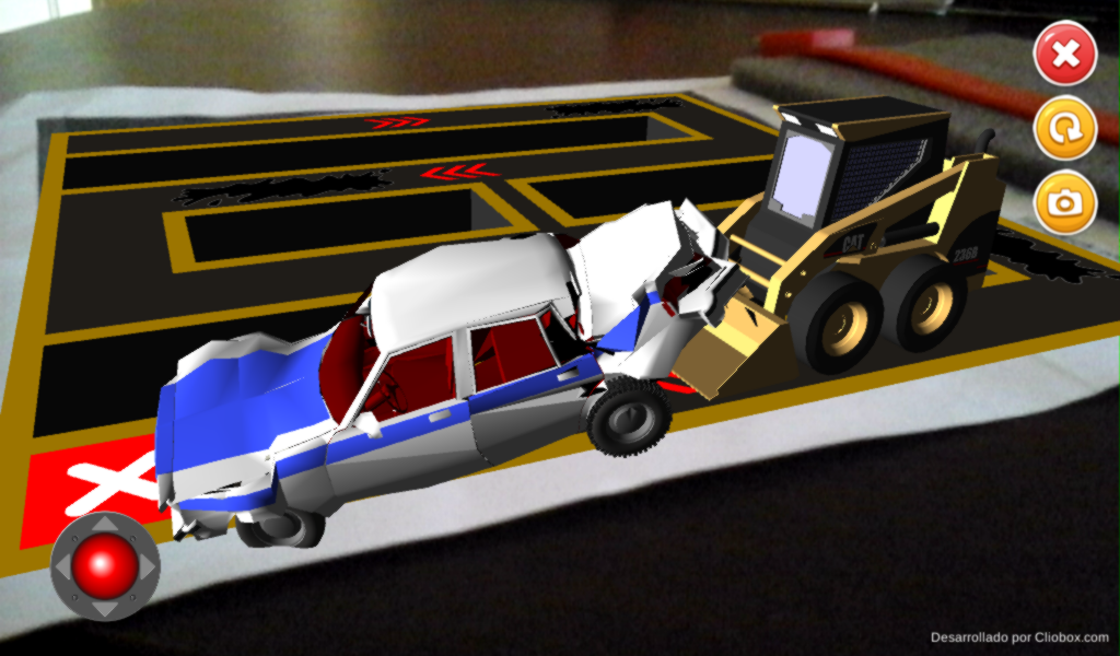4. Ejecuta la aplicación instalada y cuando se active la cámara de tu dispositivo enfoca la imagen impresa y disfruta de AR-Tractor conduciendo al vehículo hasta la meta con el joystick virtual.