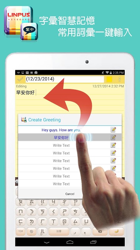 14.支援对7”以上萤幕设备可以任意拖曳虚拟键盘配置视窗,灵活使用;