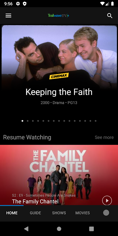 Trailwave TV is a streaming TV service available exclusively to Trailwave Fiber's High-speed Data customers. Watch TV how you want, anytime you want using your favorite mobile device or TV without the need for a set top box! Amazing features include: * Cloud DVR - Base service is 50 hours with options up to 300 hours of recording * All channels broadcast in High Definition * All of your favorite sports channels included * Add devices and hours of cloud storage for a small additional fee.