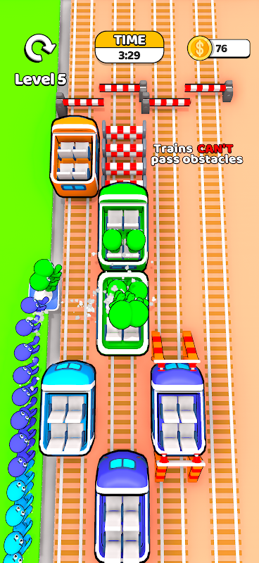 准备好迎接《火车乘客》,这是一款终极超休闲益智游戏,快速思维和敏捷动作是成功的关键!你的任务?通过将在车站等候的乘客与相同颜色的火车匹配来组织他们。听起来很简单?再想一想!