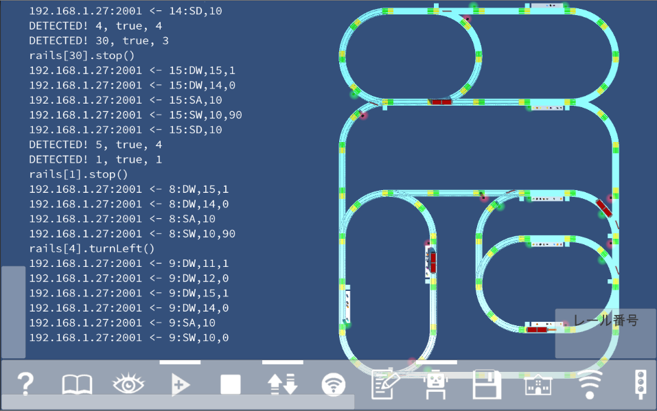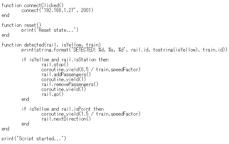 活用法1で使ったスクリプト言語Luaのスクリプトで、そのまま実物の電車玩具の走行を自動制御できるのです。