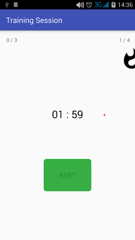 Po każdym powtórzeniu należy wybrać przycisk REST aby rozpocząć odpoczynek. Po odliczeniu ustawionego czasu aplikacja zasygnalizuje krótkim sygnałem dźwiękowym oraz komunikatem na ekranie.