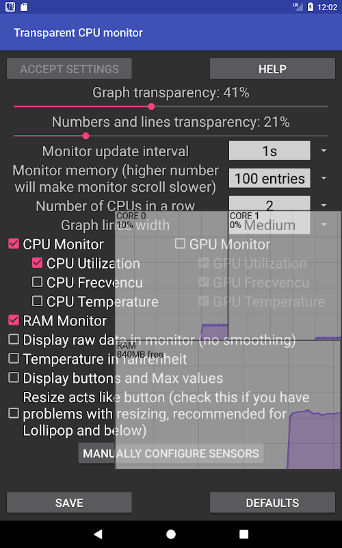 应用程序创建具有CPU,GPU或RAM信息半透明图形,在所有应用的顶层
