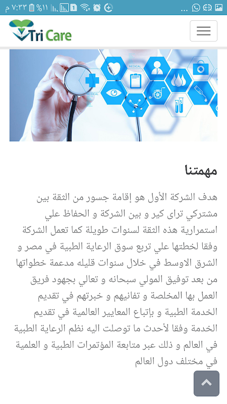 شركة تراى كير هى شركة مصرية تأسست في 2011 بغرض تقديم و إدارة برامج الرعاية الطبية للشركات و الهيئات و المؤسسات العاملة فى السوق المصرية مستعينة في ذلك بخبرة امهر الكوادر فى شتي مجالات الرعاية الطبية من أطباء و مسئولي تعاقدات و مراجعة طبية و محاسبين و مسئولي خدمة عملاء و مسئولي تشغيل و ذلك شركة تراى كير هى شركة مصرية تأسست في 2011 بغرض تقديم و إدارة برامج الرعاية الطبية للشركات و الهيئات و المؤسسات العاملة فى السوق المصرية مستعينة في ذلك بخبرة امهر الكوادر فى شتي مجالات الرعاية الطبية من أطباء
