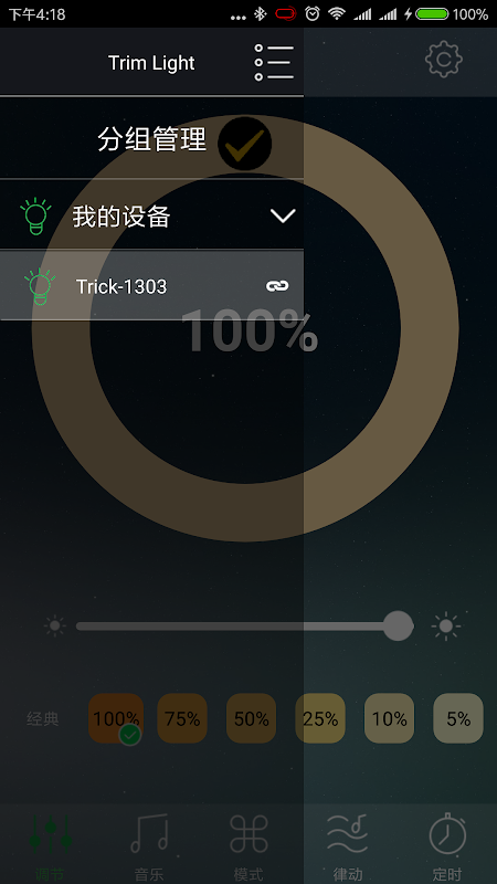 2、控制蓝牙灯进行亮度调节。