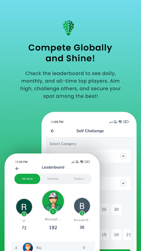 全球排行榜:在我们的每日、每月和历史排行榜上与来自世界各地的问答爱好者竞争。挑战自己,达到顶峰并证明您对测验的掌握程度!