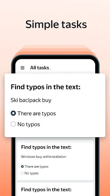 Earn money at any time and from any device — your smartphone, tablet, or computer. Use the app both for basic income and for freelancing, like if you want to do tasks part-time after work, on weekends, or on vacation.