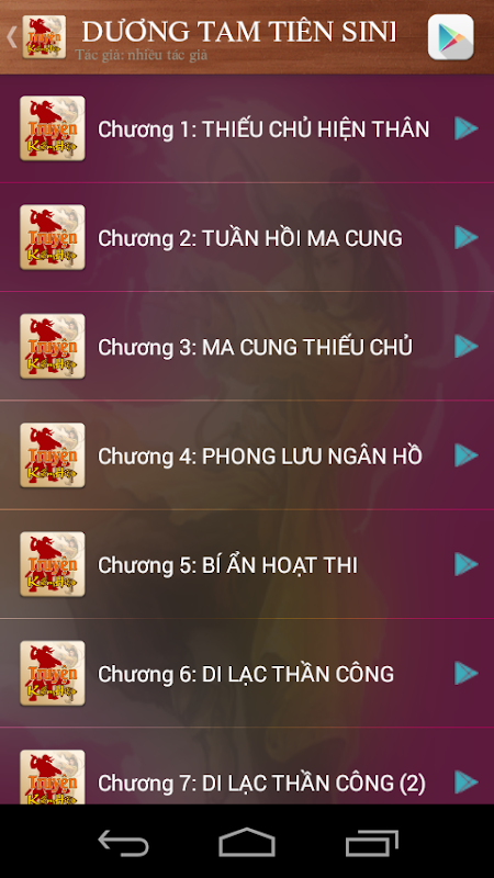 Tiếp nối thành công của ứng dụng “Truyện Kiếm Hiệp Chọn Lọc”. Ứng dụng tổng hợp các truyện kiếm hiệp đang được nhiều người quan tâm nhất bao gồm: