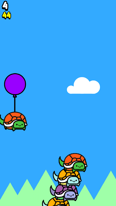 Turtles are falling from the sky! Tap to cut the rope off their balloons and stack them on the turtle tower. Stack turtles higher and higher to reach the heavens! As you progress, new turtles will join your cause. Check out their turtle cards in the collection and choose the strongest turtles that you have rescued to serve as the base of your tower!