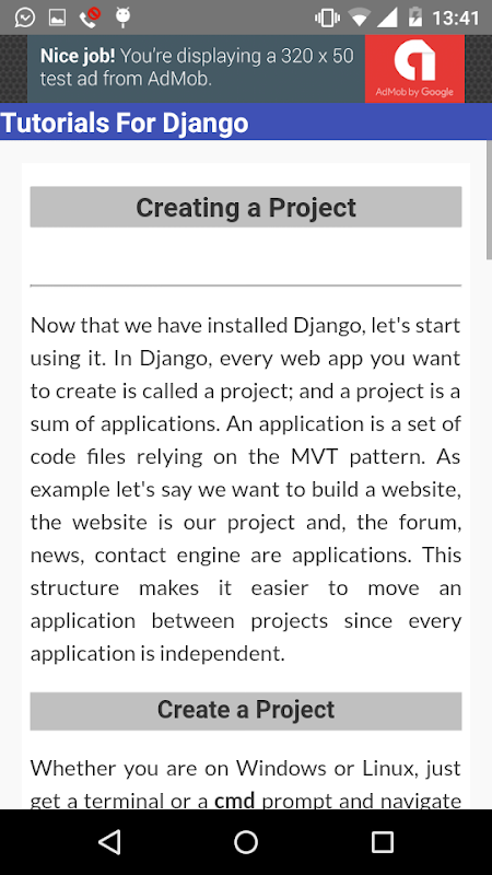 Tutorials for Django is a complete application for those of you who want to learn Django easily and for free. There are dozens and even hundreds of Django tutorials starting to base for beginners to advanced. All these tutorials you can read without the need to connect to the internet or mobile data.