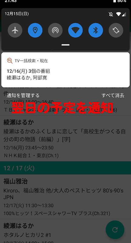 如果第二天有符合您关键词的节目,它会通知您。这样可以防止您错过感兴趣的节目。