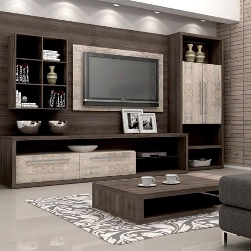 這次的電視觀看區域是黑色和棕色。牆壁和沙發是故意選擇黑色的,以提供舒適和舒適的氛圍,並在黑色的牆壁上配上黃色聚光燈,在電視觀看室增添戲劇性和哥特式的印象。在放置電視的牆上,一個簡單的垂直棕色木板設計給人以奢華和優雅的印象。此外,吊燈形狀像一個獨特的平面,如下所示將給你一個口音在電視面板設計室甜美的裝飾。