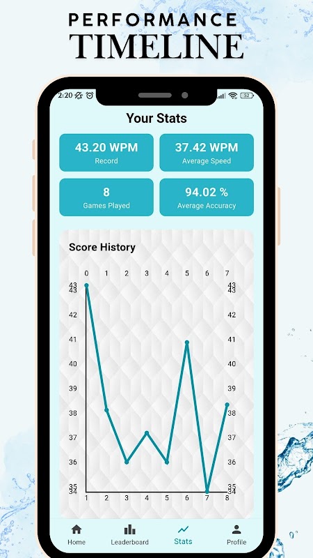 查看详细的统计数据——每分钟字数 (WPM)、准确率、错误率和趋势。保持动力,见证您的技能提升。
