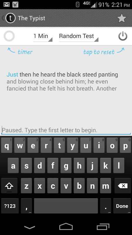 The Typist: A Quick Typing Test Official Site: http://www.androidtypingtest.com
