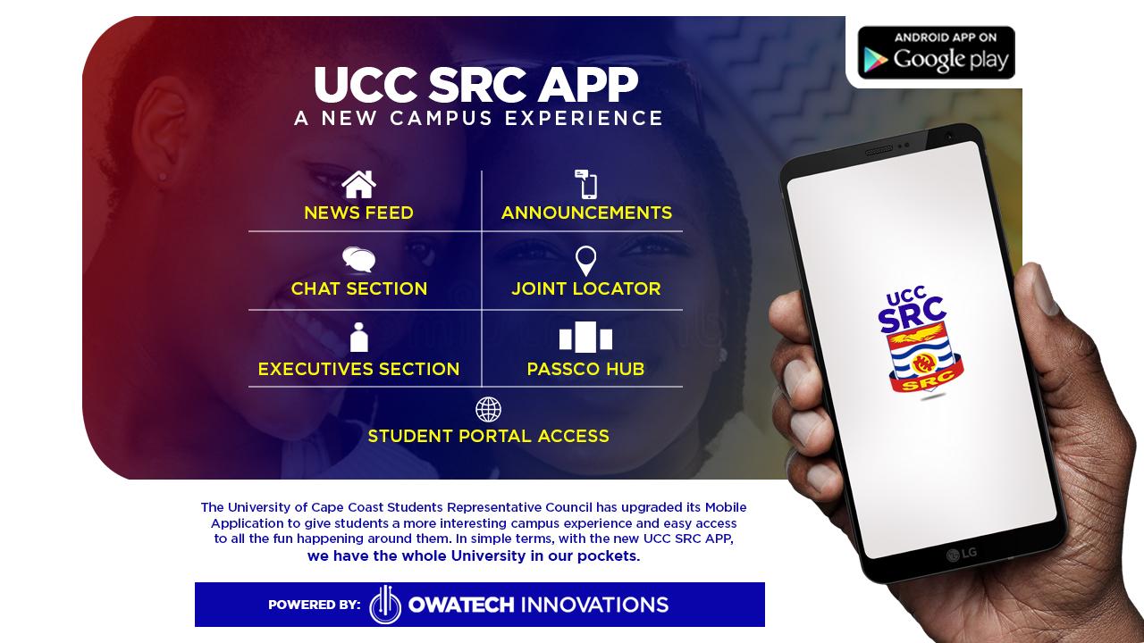 UCC SRC app was developed for the University of Cape Coast’s Students’ Representative Council with the aim of giving the student populace a great campus experience.