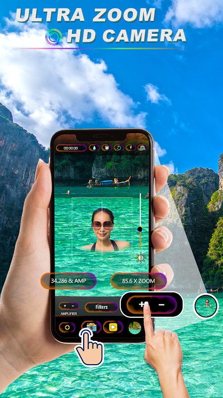 1000 倍变焦相机高清应用程序非凡的变焦功能就在您的指尖。该应用程序提供用户友好的控件,用于调整智能手机相机的缩放级别。