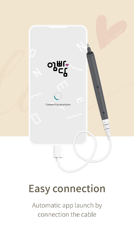 [轻松连接]如果使用电缆将专用笔连接到智能手机,该应用程序将自动运行,任何人都可以轻松使用它。