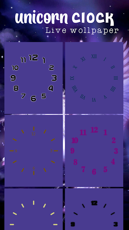 独角兽时钟壁纸有助于用具有不同独角兽背景的模拟时钟装饰您的主屏幕。独角兽时钟壁纸非常适合想要新的个性化应用程序的智能手机用户。
